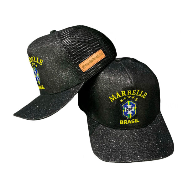 Glitter Deslumbrante: Este boné é a definição de elegância com seu acabamento em glitter que reflete a luz de maneira espetacular.